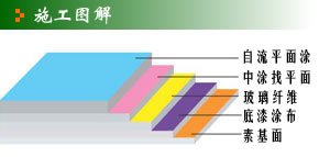 1、基層處理; 2、砒涂乙烯基脂滲透底涂; 3、鋪貼玻纖布,將調好的乙烯基脂環氧樹脂和固化劑倒于玻纖布上涂刷; 4、中涂找平層; 5、在面層鏝刮環氧自流面涂確保表面平整光潔。 |